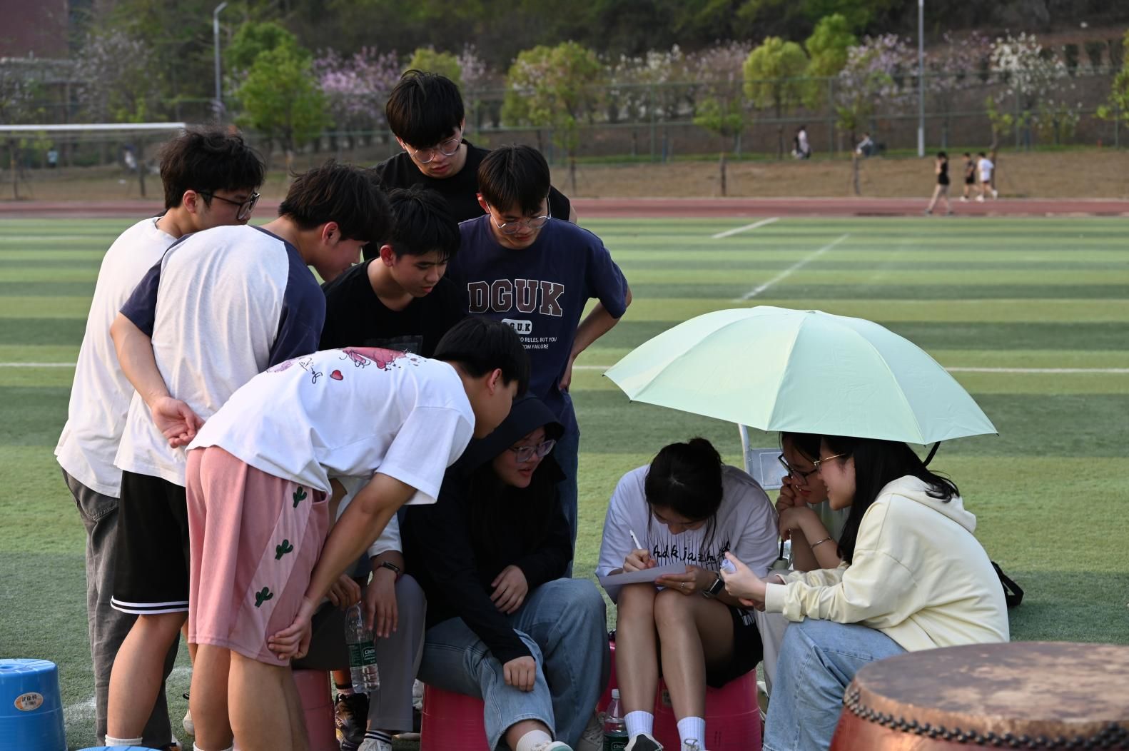 beats365的小组成员蒙上眼罩,手持鼓槌,在黑暗中仅凭队友敲击木棒的方位指引摸索前行。期间,他们多次误判方向,但队友们并未气馁,改用《国际歌》的节奏传递信号。终于,在大家的共同努力下,鼓槌准确击中鼓心,场边顿时爆发出热烈的欢呼声。beats365的结志洋在活动结束后反思道:“正如游戏中需要无条件信任队友的指引一样,在现实生活中,我们更要坚定对党组织的信仰,始终紧紧跟随党的步伐。”