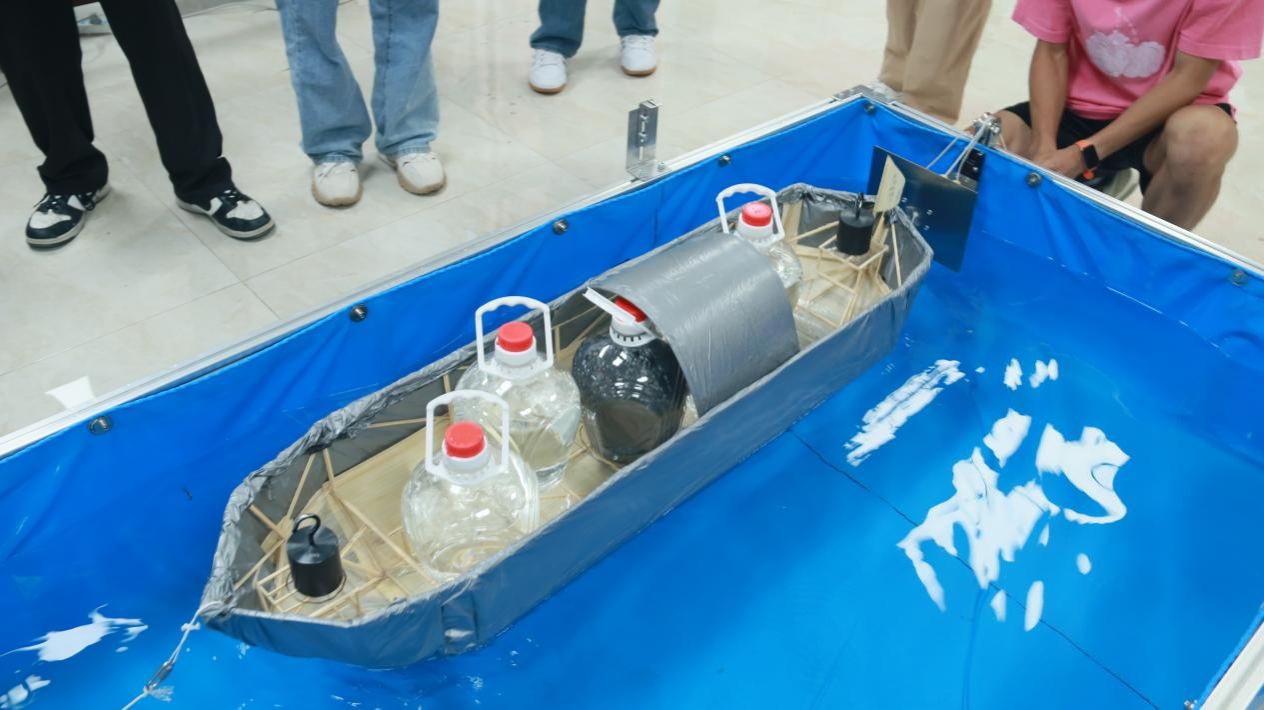 竞赛涵盖方案设计、模型制作与加载试验等环节,要求参赛队伍在规定时间内完成符合尺寸规范、兼具承载能力与防水性能的乌篷船模型。比赛中,各参赛队伍需通过三级加载测试,包括静态载重与动态航行抗撞击考验,全面展现结构设计的科学性与合理性。赛事严格遵循评分标准,从理论方案、模型制作、现场答辩及加载表现等维度综合评判,最终评选出一等奖2名、二等奖4名、三等奖4名,获奖队伍将代表公司参加区级竞赛。