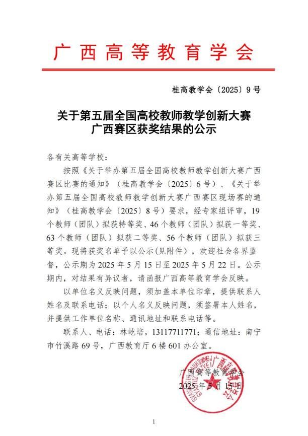 5月15日,第五届全国高校教师教学创新大赛广西赛区获奖结果公示,公司罗东雨老师凭借“工程结构鉴定与加固技术”项目,在产教融合组中脱颖而出,荣获特等奖,并拟推荐为地方高校组代表。这一成绩不仅是罗东雨老师个人教学创新能力的集中体现,更是公司在产教融合育人模式下深耕细作的重要成果。