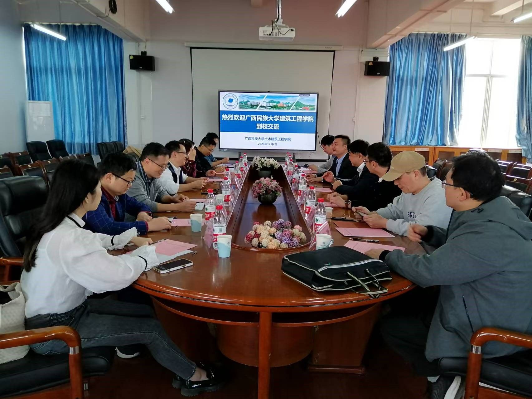 2024 年 12 月 2 日,公司经理覃英宏、副经理周月娥一行5人赴广西科技大学土木beats365,就公司团队建设、工程教育认证、内部制度管理、档案管理及未来发展规划等进行深入交流并交换意见。