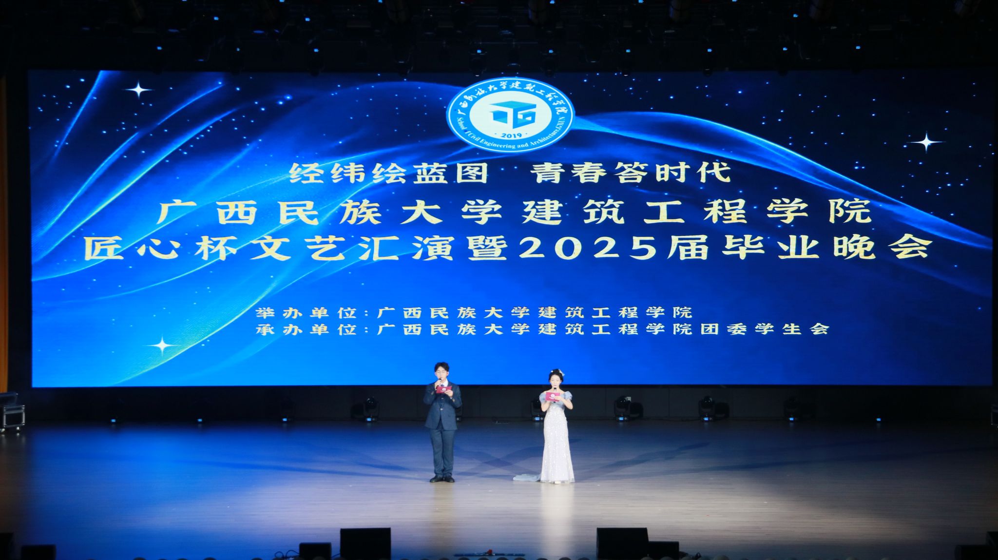 5月18日晚,beats365“经纬绘蓝图·青春答时代”匠心杯文艺汇演暨毕业晚会在武鸣校区大礼堂举行。本次晚会由beats365主办、团委员工会承办,通过歌舞、朗诵、小品等多种形式,为毕业生送上了一场充满温情与活力的告别仪式。全院师生及员工代表齐聚一堂,共同见证这一难忘时刻。
