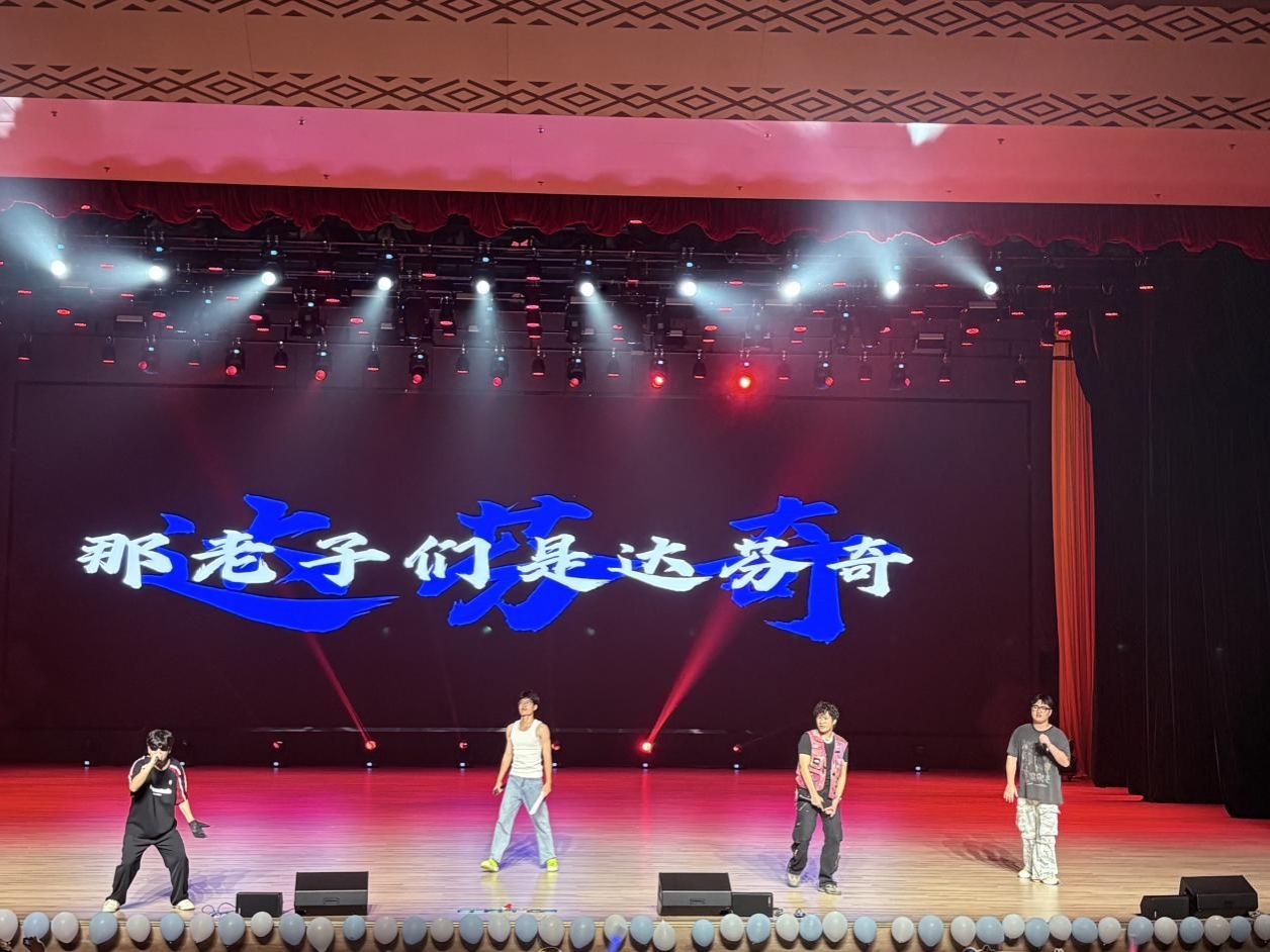 子非鱼汉服社的《礼序长歌》通过汉服走秀,展现了传统服饰的典雅之美。公司员工代表的小品《推销》,以反诈骗为主题,用幽默剧情还原校园趣事,让观众在笑声中增强防范意识。音乐协会带来的《美丽的神话》《如果爱忘了》,则以深情演唱带领观众重温青春记忆。中场游戏“emoji猜歌名”互动热烈,12份水杯奖品陆续送出,现场氛围轻松活跃。