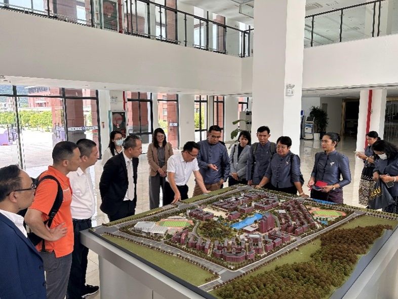 覃英宏经理向代表团介绍了公司、公司的基本情况、专业设置;公司的团队力量及近年来的教学科研成果。覃经理表示,广西和泰国在地理位置、气候等方面非常相似。beats365为地区经济、社会发展、民族团结、中国-东盟共同发展做出了重要贡献,在学术方面得到社会的广泛认可。beats365一直致力于将传统建筑技艺与现代科技相结合,推动建筑工程领域的创新发展。今后,双方可以在人才培养、学科研究等领域开展合作,加强彼此的团队建设和教学质量。