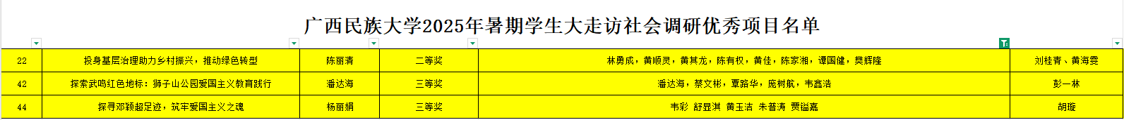 由彭一林老师指导,潘达海同学担任负责人的“探索武鸣红色地标:狮子山公园爱国主义教育践行”项目,以及胡璇老师指导,杨丽娟同学担任负责人的“探寻邓颖超足迹,筑牢爱国主义之魂”,通过实地走访与史料研学,传承红色基因,弘扬爱国精神,双双荣获三等奖。